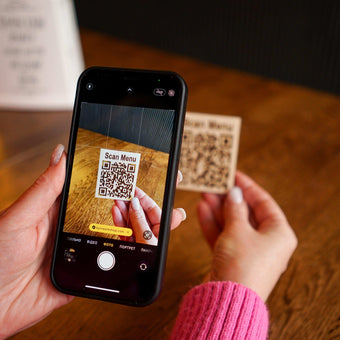 Touchless Wooden QR Code Menu Sign with Custom Text