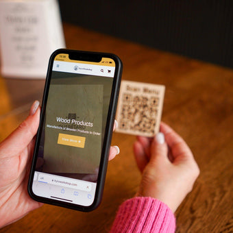 Wooden qr cod sign with your custom text and business logo The sizeHeight: 7 cm/3.5 inchWidth: 6 cm/2.7 inchIt is possible to make a custom size Our plates with a...+ See More