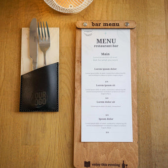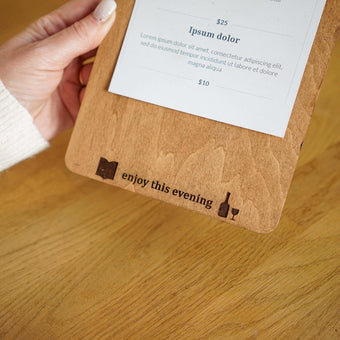 Custom Wooden Bar Menu Wine List Cover The menu board is made of high quality 4mm thick plywood and coated with wood impregnation.Engraving is included in the price, the place...+ See More