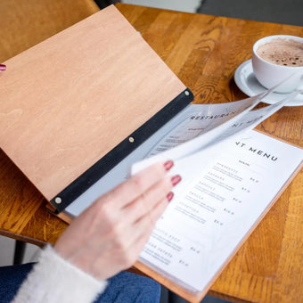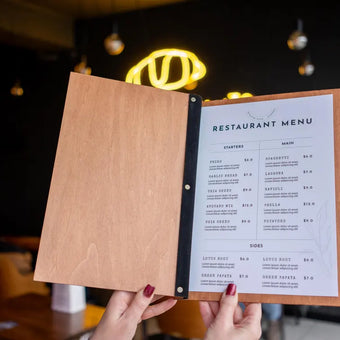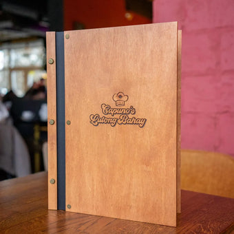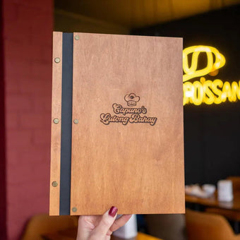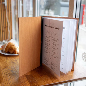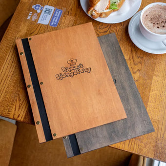 Wood Restaurant Menu Cover Elegant and durable menu cover made of high-grade 4 mm plywood, coated with wood impregnation. Engraving is included in the price - the location can be...+ See More