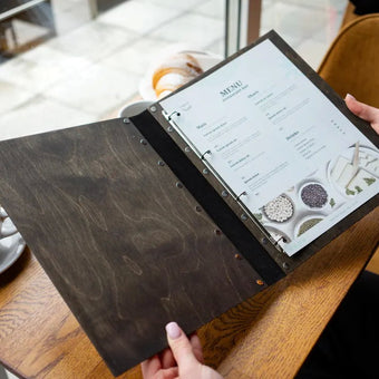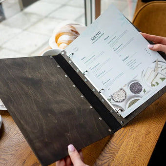 Wooden Menu with 4 ring clamp, Menu Cover, Restaurant Menu Cover, m-109